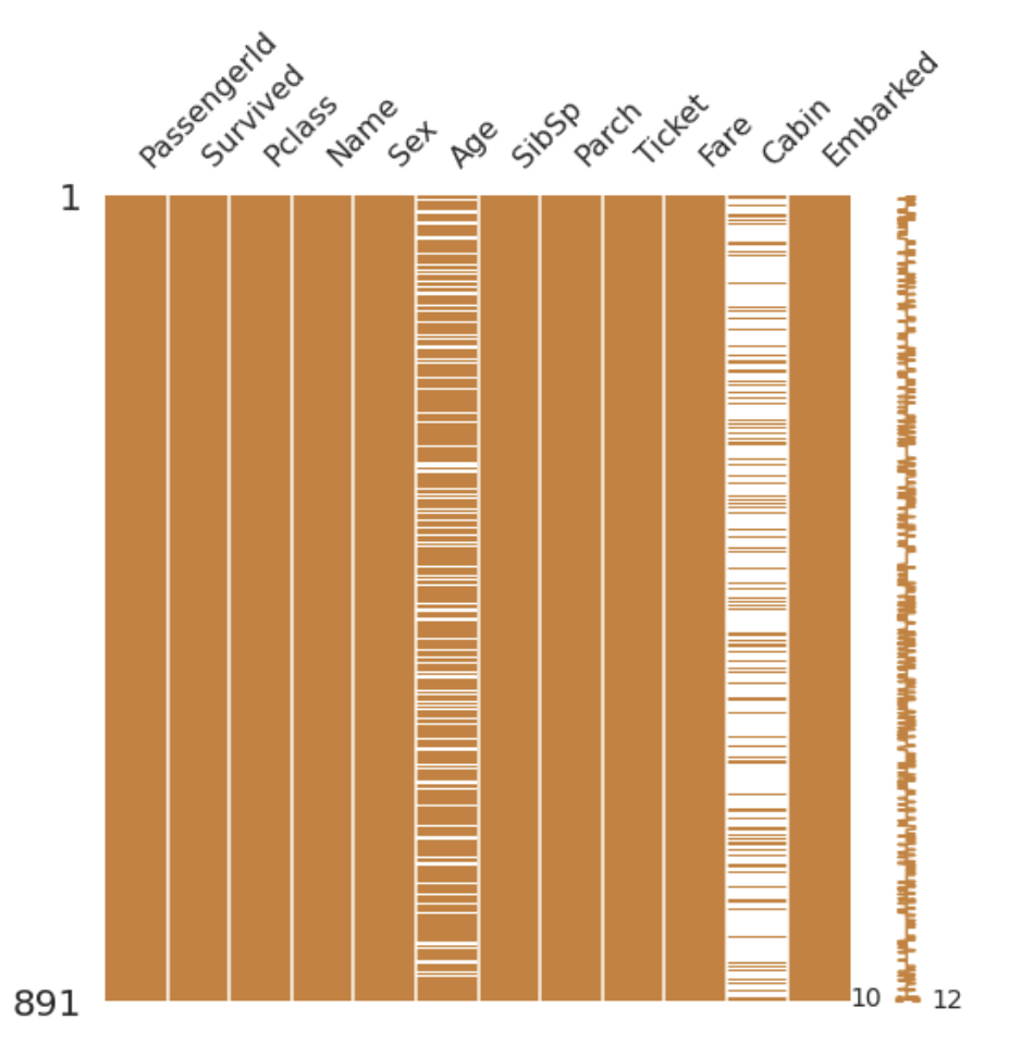 -missingno : 채워지지 않은 널 값을 쉽게 보여주는 lib