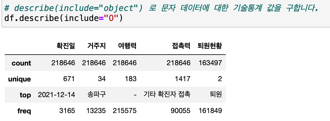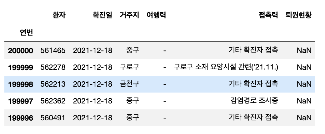 - ex) df['확진일'] = pd.to_datetime(df['확진일'])